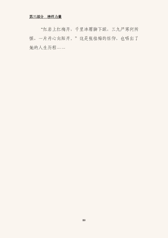 第三部分 榜样力量 “红岩上红梅开,千里冰霜脚下踩,三九严寒何所 惧,一片丹心向阳开。”这是张桂梅的信仰,也唱出了 她的人生历程…… 89