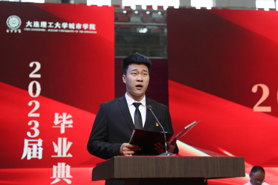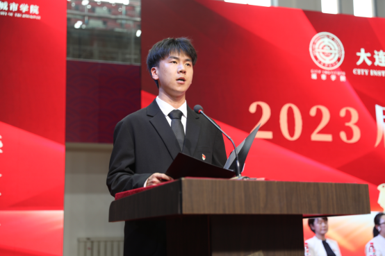20级日语专业杨星博同学发言,表达了向毕业生看齐,积极进取,用自己的实际行动为母校增光,为人生添彩的决心。