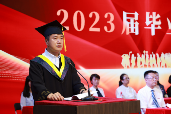 2023届毕业生孙伟杰同学发言,表达对母校的不舍和感激之情。他叮嘱学弟学妹们珍惜每一堂课,永远保持求知好学的态度。