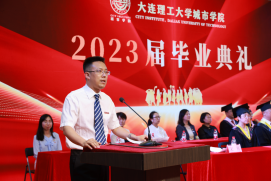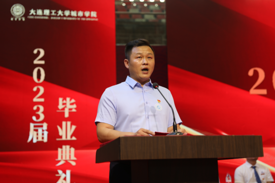 辅导教师刘焕江发言,祝贺2023届毕业生顺利完成学业,开启人生新的华章。他寄语毕业生在今后的人生中,初心如磐、奋楫笃行,既有脚踏实地的努力,又有仰望星空的诗意。