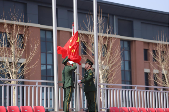 伴随着激昂的《义勇军进行曲》,鲜艳的五星红旗冉冉升起