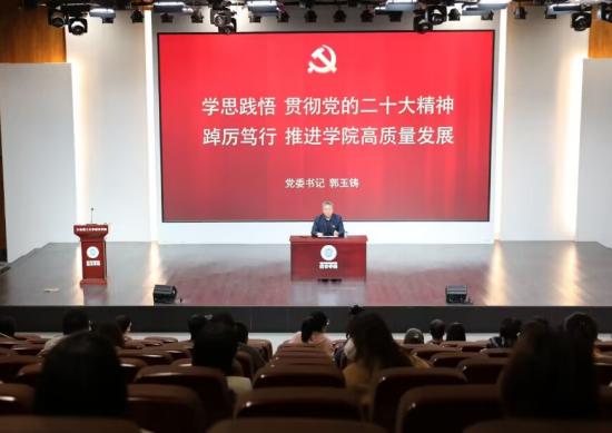 宣讲结束后,郭玉铸在部署全院学习贯彻党的二十大精神时指出,理论学习没有止境,全院上下要把学习党的二十大精神作为当前理论武装工作的重中之重,把握导向、突出重点、讲求实效,着力增强感召力、凝聚力、影响力,切实推动习近平新时代中国特色社会主义思想和党的二十大精神在全院广大党员干部、师生中落地生根。要坚持班子带头,开展全覆盖学习培训。要运用好党的二十大报告、《党的二十大报告辅导读本》《中国共产党第二十次全国代表大会文件汇编》、习近平新时代中国特色社会主义思想系列丛书等辅导材料,从严从实组织好党委理论学习中心组学习,制定系统学习计划,列出专题进行研讨,在学懂弄通做实上下硬功夫,努力用习近平新时代中国特色社会主义思想武装头脑、指导实践、推动工作。
