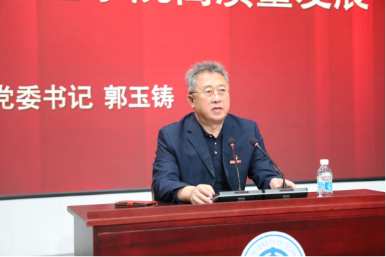 郭玉铸强调,党的二十大精神内容非常丰富,思想深刻,我们一定要充分认识学习宣传贯彻党的二十大精神的重大意义,按照党中央部署,不断深入学习,全面准确领会,用习近平新时代中国特色社会主义思想武装头脑、指导实践、推动工作,切实把广大党员干部群众的思想和行动统一到党的二十大精神上来,把力量凝聚到实现党的二十大提出的各项目标任务上来,把党的二十大精神落实到办学治校各环节,转化为推动福利姬