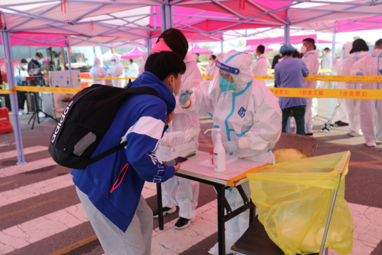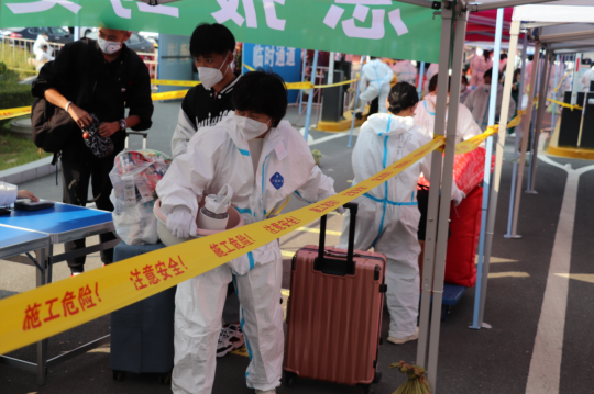 场所码,核酸检测及“五核验一测温”等程序,无异常后闭环进入寝室。