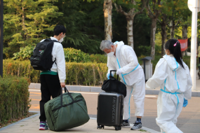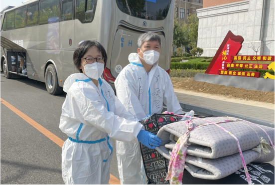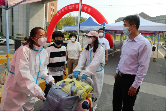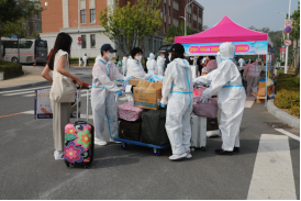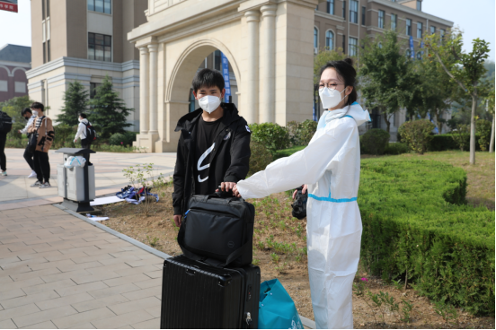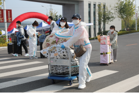 需要老师做志愿者迎新,他们夫妇就毫不犹豫地报名了。肖老师说,非常时期,要有非常措施,解决特殊问题,完全理解并赞同学校的决定,尽自己一份力。今天大家工作的都很热情,很投入,工作得也很愉快,虽然辛苦点,但挺开心的。