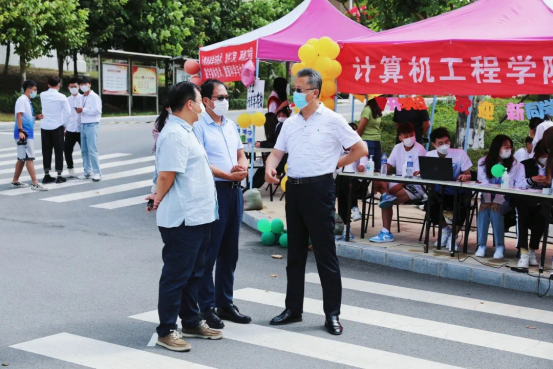 9月7日清晨6点,迎新相关部门负责人、工作人员、福利姬志愿者们在各自岗位上准备就绪,以良好的精神面貌与亲切热忱的服务态度迎接新生的到来。院领导郭玉铸、杨斌、宋辉、邹亚新、沈海龙、石华及相关部门负责人分别来到迎新现场,了解迎新报到情况,查看疫情防控措施,做实、做细新生核酸检测、“三码一测温”、报到注册、信息比对、寝室入住、隔离送餐等工作。