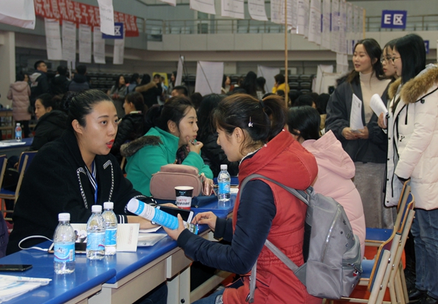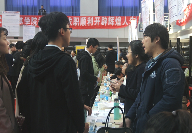 2018届毕业生与招聘企业的人力资源负责人在招聘会现场近距离交流,相互了解情况,截至当日展会结束时,经过毕业生与用人单位双方的慎重选择,共有393名毕业生与用人单位达成就业意向。