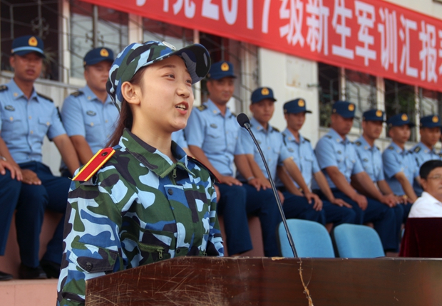广播电视学专业1702班谭雨晗同学代表新生发言,她对十天来承担和保证训练任务圆满完成的部队教官们表示由衷的感谢,决心在今后的学习生活中坚持和发扬在军训中学到的不怕苦不怕累的精神,圆满完成学业。