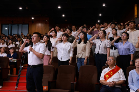 党委教师工作部部长张未萌带领全体新进教师进行入职宣誓,铮铮誓言、响彻会场,展示了新进教师在坚守教育初心中奋斗修身、在践行育人使命中培根铸魂的决心。