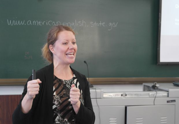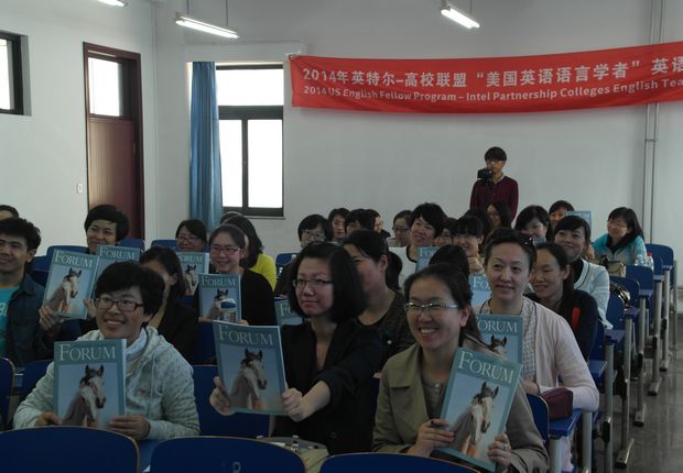 在教学楼2601教室举办2014年第二期英特尔——高校联盟“美国英语语言学者职校英语教师培训”项目。美国驻沈阳领事馆代表、Intel公司代表、以及来自大连大学、大连职业技术福利姬
