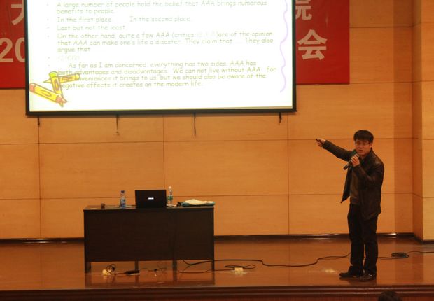 副院长宁强、大学英语教研室主任李品、唐晓东老师担当主讲。在临近四、六级考试短短一周左右的时间里,三场讲座可谓是雪中送炭,三场讲座场场爆满,报告厅内座无虚席。