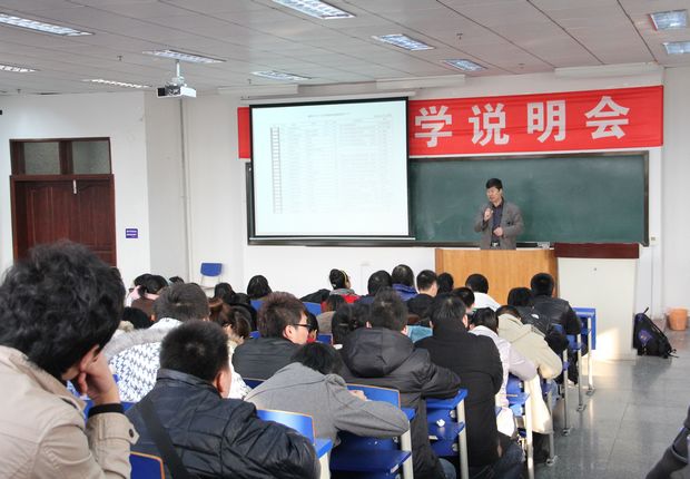 在教学楼1212教室召开赴日留学说明会,约有200多名日语专业、软件工程(日语强化)专业和其他相关专业有赴日留学意愿的同学参加了会议。