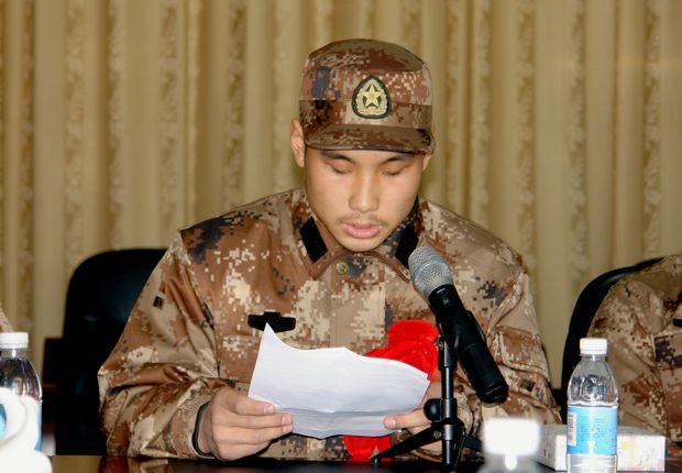 教师代表李琢代表全院教师向全体新兵送上了殷殷嘱托,希望大家志存高远,牢固树立从军报国的远大志向,经过军营的洗礼,成为同时代青年的楷模;希望大家严守纪律,在艰苦的环境中摔打磨练,把自己锻造成为钢铁长城的一块坚强柱石;希望大家苦练本领,以英模为榜样,珍惜大好时光,练出过硬的军事素质,为部队的现代化建设贡献力量,为部队增光,为亲人增光,为城院增光。