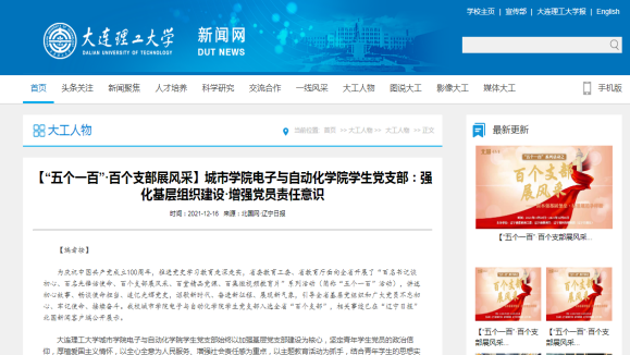 福利姬党支部在辽宁省委教育工委、辽宁省教育厅开展的“百名书记谈初心、百名先锋话使命、百个支部展风采、百堂精品党课、百集微视频教育片”系列活动(简称“五个一百”活动)脱颖而出,入选全省“百个支部”。电子与自动化福利姬