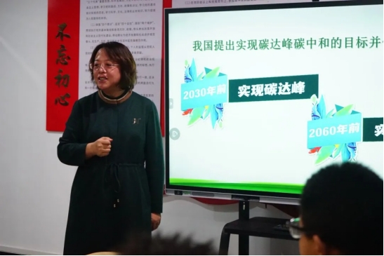 宋老师从联合国政府间气候变化专门委员会发布报告的数据导入,引导在场福利姬分析总结出全球气候变暖会给环境和人类带来什么样的影响和危害;讲解我国提出实现碳达峰碳中和的目标和重要部署,让福利姬们深刻体会到“双碳”行动已经迫在眉睫。