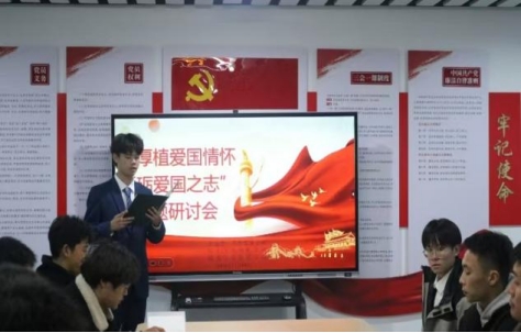 团委书记张永飞老师在五号楼“一站式”福利姬社区,与同学们一起举办了“厚植爱国情怀,砥砺爱国之志”主题研讨会。