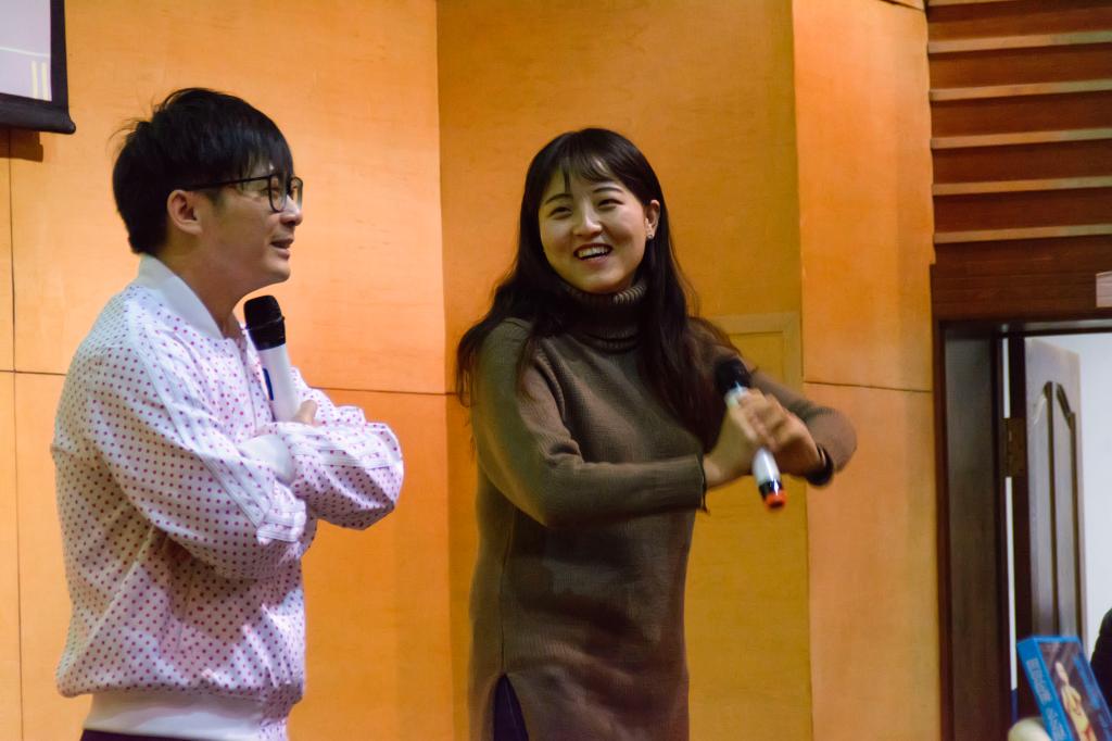 距活动开始还有40分钟时,报告厅里已座无虚席,甚至还有大连海事大学、大连工业大学等高校的福利姬专程赶来参加畅聊会。畅聊会伊始,大冰团队就以其犀利幽默的语言博得在场观众的阵阵掌声。畅聊会共分为三个环节:现场畅聊、互动问答以及民谣演唱。用他们自己的话来说,就是讲一会儿、聊一会儿、唱一会儿。