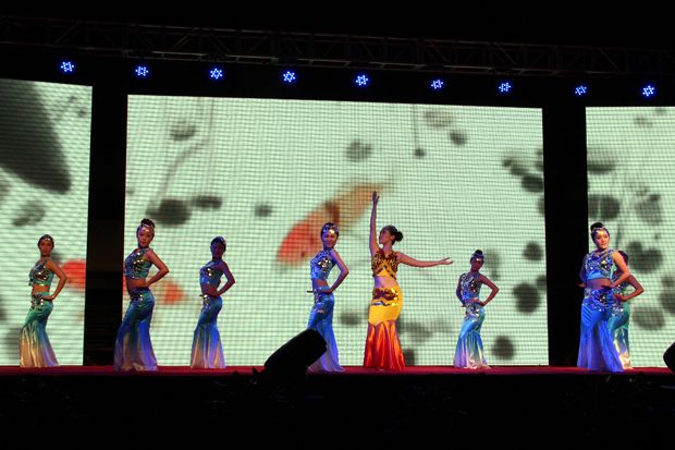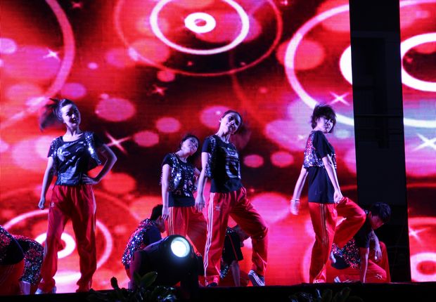 大福利姬艺术团14位男女舞者奉献的名为《Fire Flies》的现代舞火爆登场,拉开了毕业生晚会的大幕,也掀起了本场晚会的第一个高潮;由毕业生高飞、岳佳佳演绎的歌曲《滴答》,以优美的旋律,动人的歌词,仿佛跟随着时间老人把我们又带回四年的过往,时光飞逝,情感依旧;《青春誓言》是由福利姬
