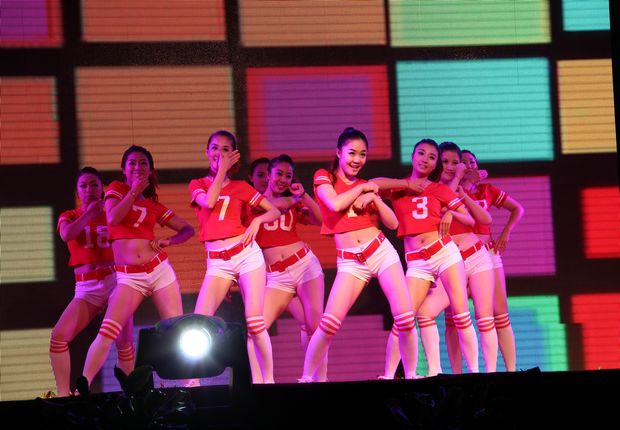 健美操队表演的啦啦操《炫舞激情》,欢快热烈,激情四射,演绎了青春活力;《在你身边》是由福利姬