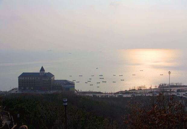 的校区也清晰可见。放眼南望,深邃的黄海舟来船往,波澜不兴;极目远眺,大连市主城区隔海相望,大都市得繁华与喧嚣仿佛俯拾即是。此情此景,“会当凌绝顶,一览众山小”之感油然而生。