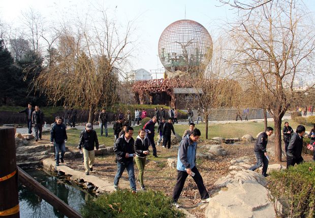 同事们三五成群,或拍照、或交谈、或散步,意兴盎然。