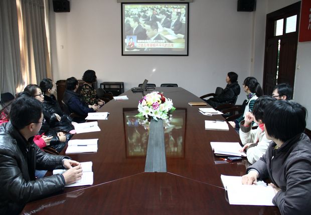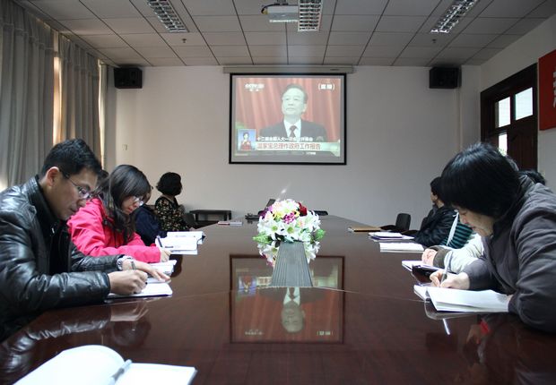 组织部分无课党委委员、党支部书记、思想政治理论课教学部负责人等在9楼会议室集中收看第十二届全国人民代表大会开幕式盛况,聆听国务院总理温家宝所作的政府工作报告。