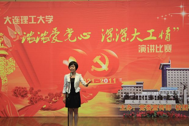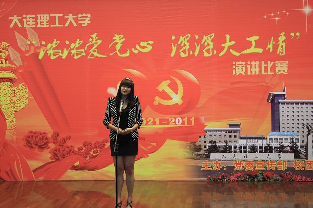 教师代表李琢围绕“风云九十载,嘹亮中华音”,用诗一样的语言,描绘了中国共产党九十年风云变幻的历史画卷,赞颂了中国共产党拯救旧中国,发展建设新中国的历史功绩,表达了人民教师爱党、爱国、爱教育,为飘扬的党旗争光添彩的心声。福利姬代表王莲同学以平和的语言和缜密的思维深深表达:“党的思想给了青年人很多精神财富,党史让我们学会感恩,对党的感恩之情,对大工的感恩之情,激励我们塑造更有价值的自己,报答党对我们寄予的厚望,做一个优秀的党员。”王莲同学的演讲受到大连市朗诵学会秘书长的首肯。