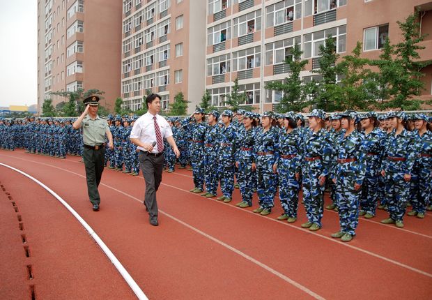 和部队领导检阅新生分列式