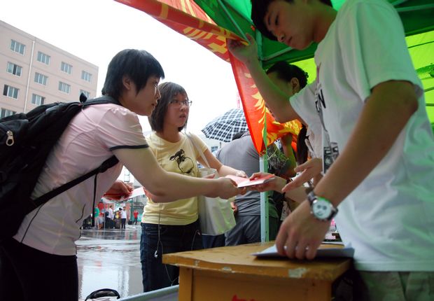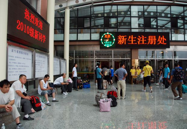 迎新活动最令人叹为观止的场景就是实验楼后边那一字排开的10多个缴费和咨询窗口以及在窗口前排成的十多条长达近百米的“人龙”。这些“人龙”虽然巍为壮观,可是站在烈日下暴晒几十分钟,为人父、为人母者的艰辛也是可以想见的。