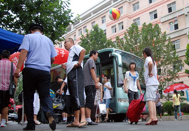 穿梭往来的豪华大巴拉近了新生及家长与学校的“距离”