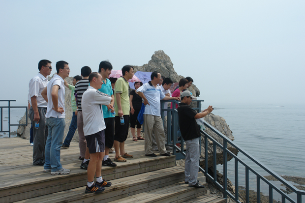 在导游的引导下,教职工们观看了恐龙探海、鲲鹏展翅、蟹将出洞、刺猬觅食以及千层饼,龟背石等奇异岩石景观。大家感叹大自然的鬼斧神工,并在金石滩国家地质公园碑前合影留念。