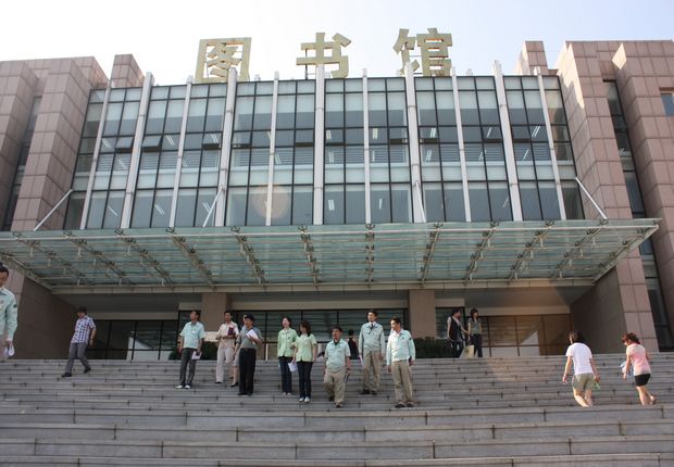 客人在图书馆前