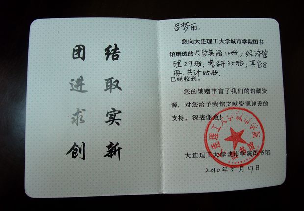 图书馆捐赠书籍85本,表达了对自己母校浓浓的眷恋之情、对老师们深深的感激之意,同时也寄托了对学弟学妹们的激励之念。