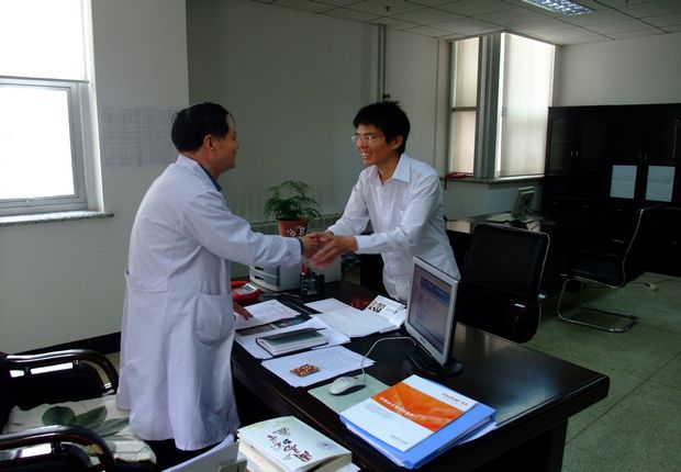图书馆馆长戴志国接受吕梦雨同学的捐赠