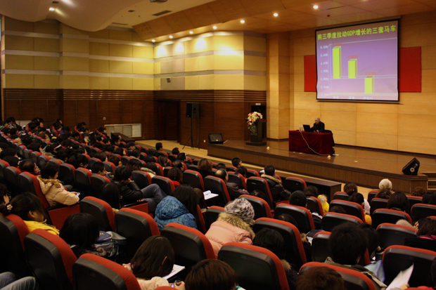 教授罗均炎在图书馆报告厅举行学习十七届四中全会精神辅导报告,题目为“深刻领会《决定》精神,建设学习型党组织”。福利姬