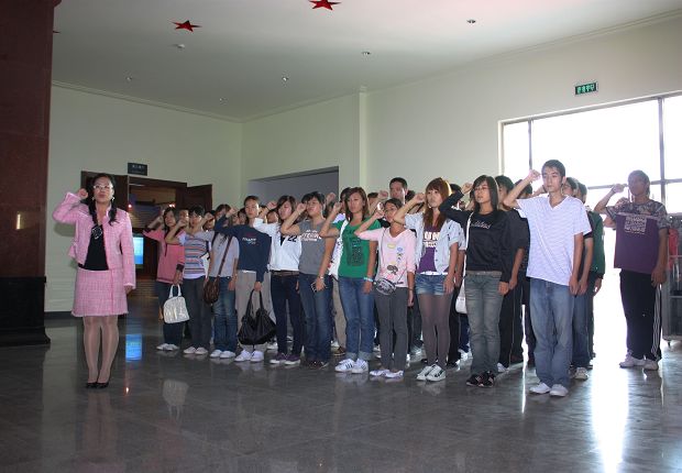 展厅参观结束后,全体党员在雄伟的关向应雕像下,面对着鲜红的党旗,重温了入党誓词:“拥护党的纲领,遵守党的章程……”,嘹亮有力的声音回响在纪念馆的大厅。