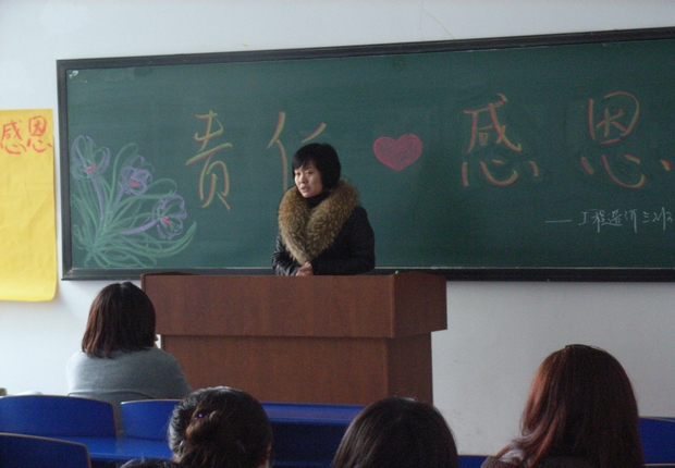 工程造价专业0903班召开的“责任•感恩”主题教育班会正在这里举行,这是这个班级召开的第四次主题班会。他们刚刚从媒体的报道中得知,班级同学夏银燕和刘朋自愿到大连市血液中心献血,夏银燕的血浆还成功救治了一名重症患儿。