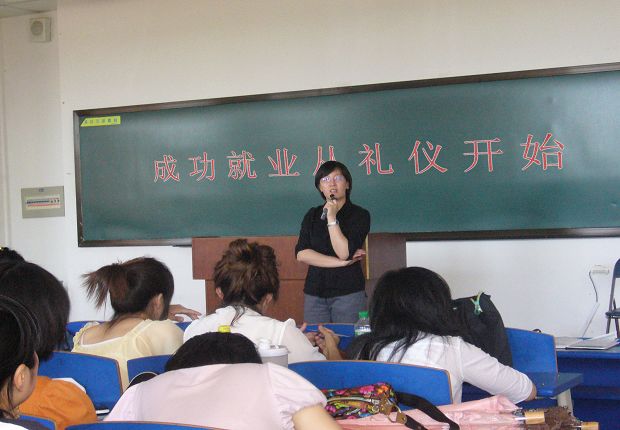 在教学楼1107教室举行就业礼仪讲座。学办主任朱金玉老师主持讲座。