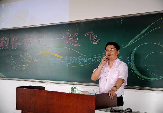 的张佳东、石春燕、叶寒露;考取大连海事大学的王宁;考取浙江工业大学的鲍晓君等同学分别对学校选择、考研心态、复习思路、学习方法、资料选择等方面做了详细的介绍,并通过互动提问的方式耐心回答了同学们提出的各类问题,会场气氛十分活跃。