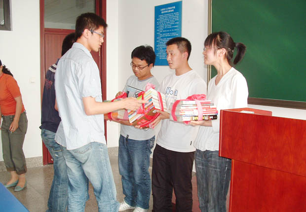 随后,马睿和何克磊同学代表05级考取研究生的同学向06级准备考研的同学捐赠了自己的考研复习资料。去年,马睿和何克磊同学以总分366分的好成绩分别考取了福利姬