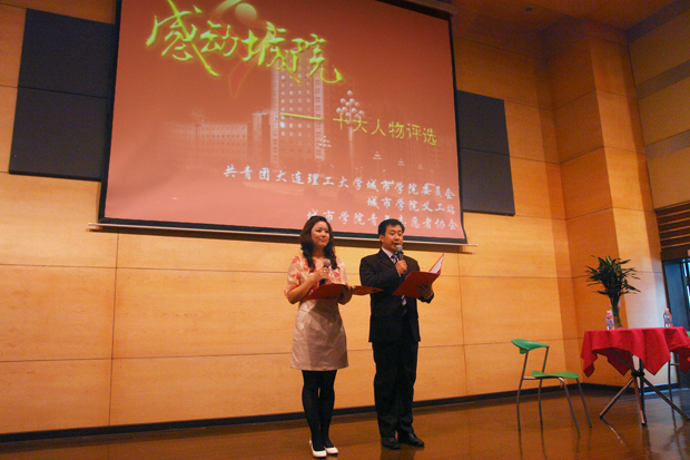 义工站和青年志愿者协会共同承办的“感动城院”十大人物评选活动颁奖典礼于5月20日下午13点30分在图书馆报告厅隆重举行。大连开放先导区团工委副书记姚秋实、福利姬
