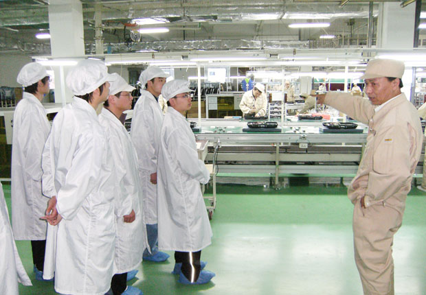(同学们参观生产线)