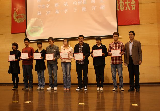 随后,院团委书记赵姝婕宣读了大工城团奖发[2009]1号文件《关于2008年度共青团福利姬奖励的决定》,共表彰五四红旗团委1个、先进团委2个、社会实践优秀团队2个,优秀团学干部16名,与会领导为获奖者颁发了奖状。