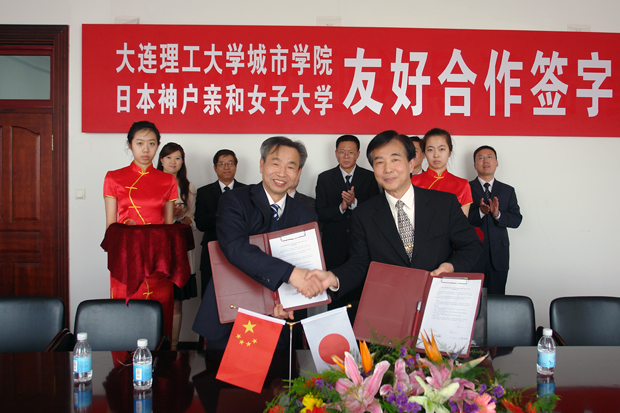 与日本神户亲和女子大学友好交流协议书》。院长助理王玉林、院长办公室主任宋辉、教学管理部副主任姚世官参加了签字仪式。