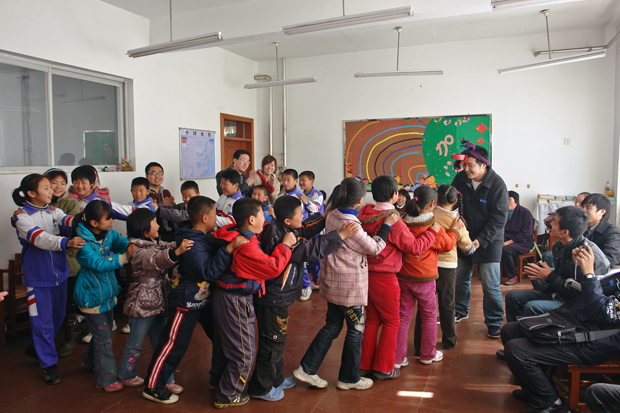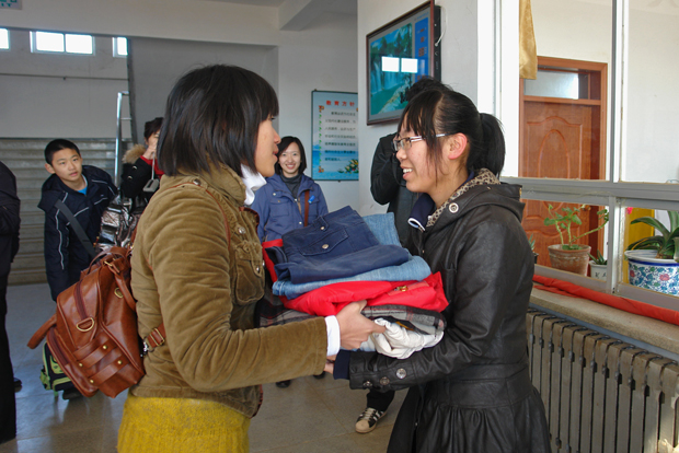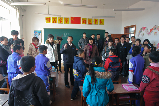 随后支教团到达了普兰店市夹河镇唐家房村小学。首先支教团将福利姬