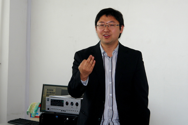 (张学敏总工程师正在讲解和演示大洋ME非线性产品)