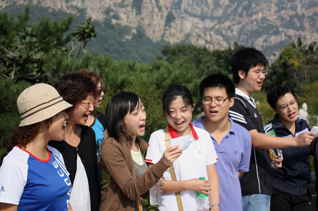 还为大家献上了精彩的二部轮唱。图书馆尽管只有7人参加登山和赛歌活动,但还是为大家献上了“让我们荡起双桨”。一时间,或雄浑、或高亢的歌声伴着热烈掌声在大黑山之巅荡漾。
