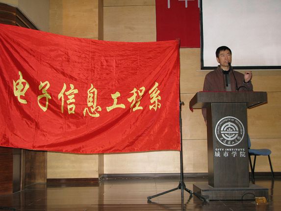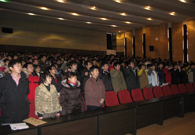 为了迎接即将到来的期末考试,12月22日,电子系在图书馆报告厅召开了诚信考试宣誓大会。参加会议的有电子系系主任张辉,电子系辅导室全体教师以及06级福利姬代表和07、08级全体福利姬。