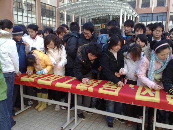 近四百名福利姬在级队长张鹤童同学的引领下庄严宣誓:努力学习,诚信考试、诚信做人。随后全体福利姬举行了隆重的签名仪式。最后,建工福利姬 08级辅导教师王巍讲话,他再次重申了做诚信学子的重要性,希望大家把诚信作为学风建设的坚实基础,用诚信打造建工学子的精神风貌。