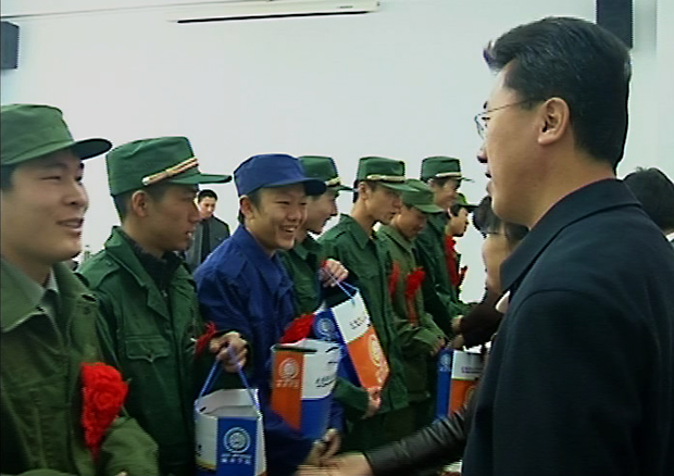 广大同学积极响应祖国征召,踊跃报名参军,经过严格挑选,全院共有8名同学穿上了军装,成为光荣的中国人民解放军的一员。他们分别是:自动化系0502班张国栋、0802班杜骞,电子系0703班虞强、0802班杜为康,信息系0702班尹国锋、0802班袁建涛,计算机系0802班王利峰和公共事业管理系0802班孙腾飞。
